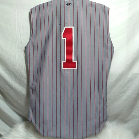 This is a RARE hard to find, Rawlings40 Hi-Lo Wesleyan 1, sleeveless jersey!! Has a couple flaws on the back which is an easy fix if you can sew or use a patch! I wanted it as is...