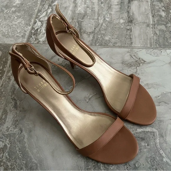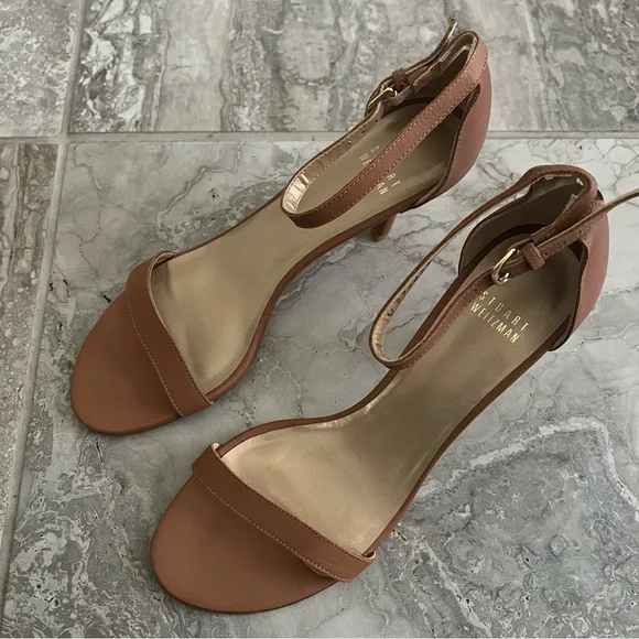 Stuart Weitzman Nunakedstraight Strap Sandals, Size 8.5 New without Box Retail $475In addition to this color being SOLD OUT online, the same sandals in different colors are online for retail, $475. Get this for a steal price! Details from site:“Our NUNAKEDSTRAIGHT sandals are part of the NUDIST Collection a range of sandals inspired by our iconic double-strap NUDIST stiletto. Defined by a minimalist sensibility these modern must-haves are set on an easy-to-wear 80-mm heel and just like their predecessor they feature an adjustable ankle strap that allows for a personalized fit.⁩”FEATURESSandalStiletto heelRound toeKeyhole detail on back counterAdjustable ankle strap​Inspired by the iconic NUDIST​Part of the NUDIST CollectionMATERIALSSuedeLeather insoleBuffed leather outsole with grooves for added tractionMADE INSpain