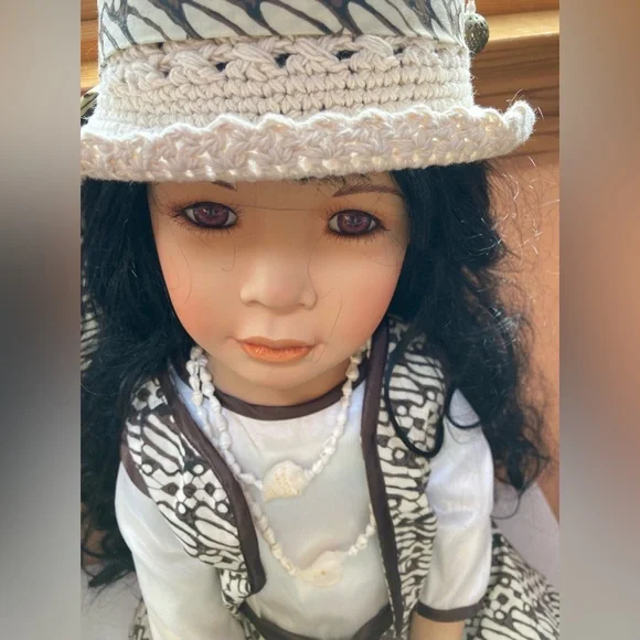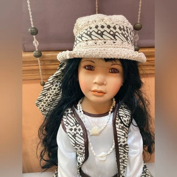 Rare 2000 Melati signed and numbered by Dwi and Catharina Saptano (barefoot and seated) porcelain doll approximately 34” number 371/1500 a beautiful addition to any collection $125