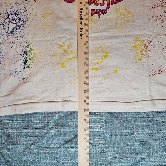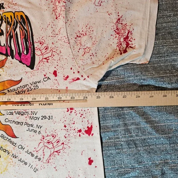 Relive the magic of summer concerts with this vintage Grateful Dead tee! This unique piece showcases a playful croquet-playing skeleton surrounded by the band´s iconic dancing bears. The vibrant graphics and all-over print capture the free-spirited energy of the 1992 Summer Tour, featuring Steve Miller Band. The shirt´s design evokes a sense of nostalgia and carefree fun. Imagine yourself wearing this at a music festival, a casual weekend gathering, or simply while relaxing at home, letting the good vibes flow.Keywords: Grateful Dead, Vintage T-Shirt, 1992 Summer Tour, Croquet Skeleton, Dancing Bears, Concert Tee, Band Tee, XXX Large, White T-Shirt, Steve Miller Band, Retro, Music, Collectible, Tour Shirt