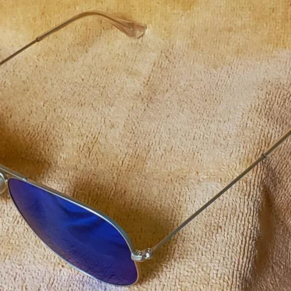 PLEASE READ AND VIEW ALL PHOTOS CAREFULLY!Ray-Ban RB3025 Classic BLUE Mirrored Aviator Sunglasses 112/17 58 14 3NLARGE METAL FRAME USED; EXCELLCENT CONDITION WITH CLOTH AND CASESOLD AS IS ALL SALES ARE FINAL NO RETURNSKNOW YOUR SIZE BEFORE PURCHASING