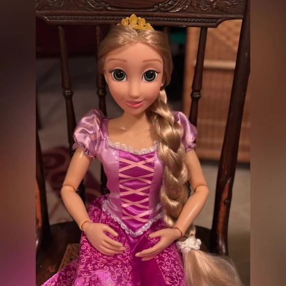 This doll is in excellent condition. Disney’s 32” Playdate Rapunzel doll has articulating wrists, elbows, shoulders, knees, hips and waist, which is unusual in such a large doll. Very clean and her hair is perfectly brushed. Pet free and smoke free home. Same/next day shipping.Disney Princess Playdate Rapunzel Doll, inspired by the movie Tangled. Size and Articulation:This doll stands approximately 32 inches (about 81 cm) tall and is fully articulated at various points, including the neck, shoulders, elbows, wrists, hips, and knees, allowing for many poses. She is dressed in her signature purple dress, as seen in the movie, and features long, blonde hair and Royal Reflection Eyes. This doll is generally recommended for children aged 3 and up#Rapunzel #Disney’sTangled #Tangled #TangledRapunzel #32InchRapunzelDoll #ArticulatingLimbsDoll#kellyskloset77Shop with confidence! I’m a Posh Ambassador lI, ship promptly, and have a five-star average. New to ? Use my code KELLYSCLOSET77 when you sign up to get $10 off your first purchase! G6 7/10/25