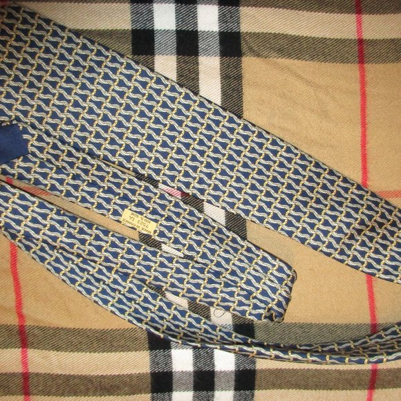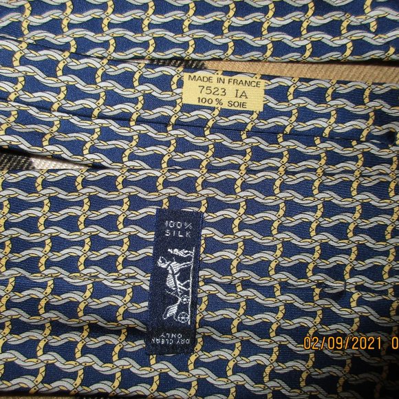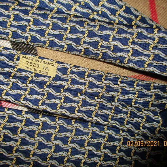 HERMESSILK TIE 7523 BLUE GOLD ROPE VINTAGE GORJUS