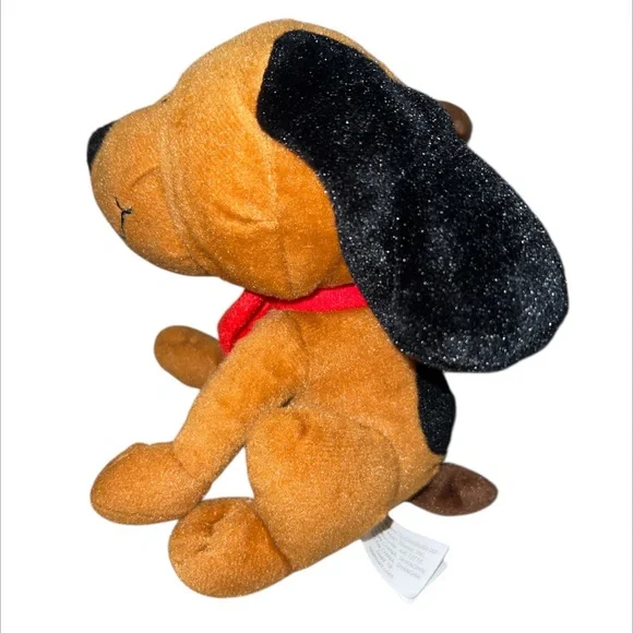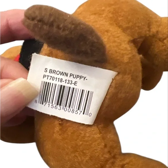 The product is a rare Walmart small brown black and brown ears puppy dog stuffed plush toy with a red bow tie collar ,eye patch embroidered eyes , It is unisex and suitable for...