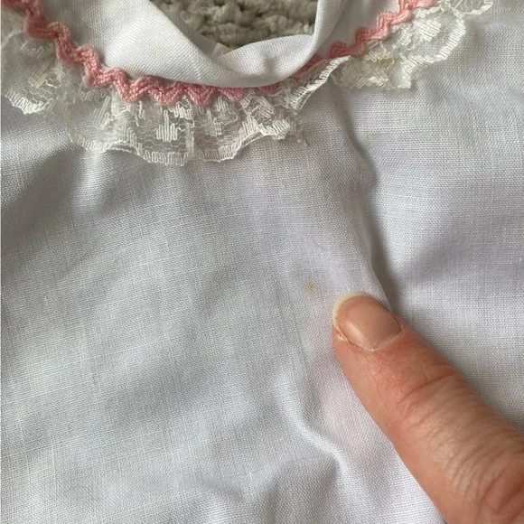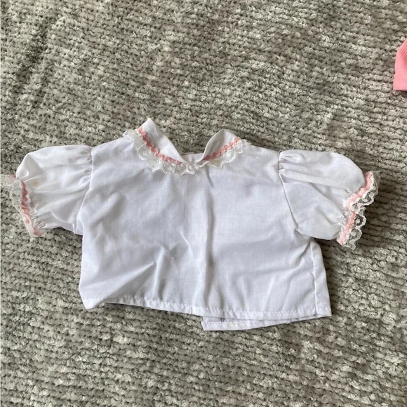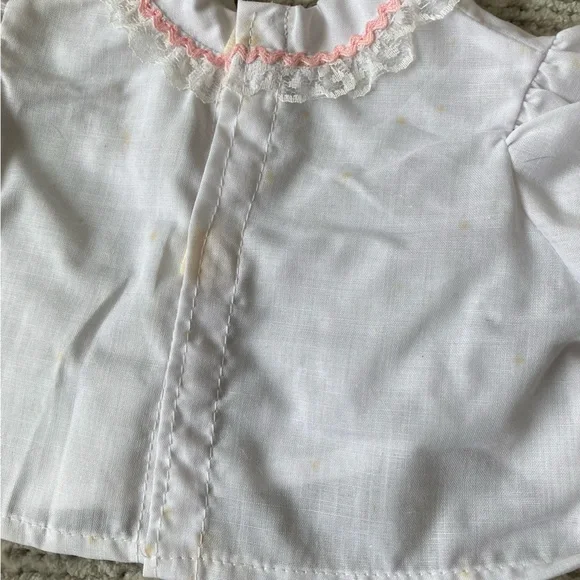 Vintage Cabbage Patch Kids Clothes Doll Retro 80sGood vintage condition PLEASE NOTE: the white shirt that goes under the pink overalls has a number of small yellow spots. I have not tried to stain treat it.Smoke free home