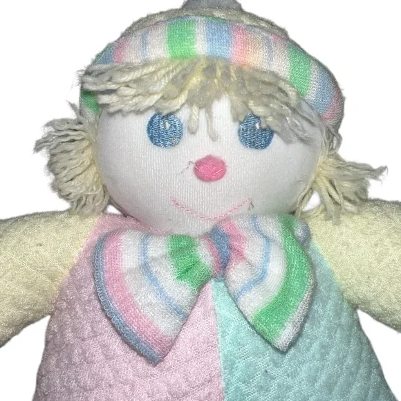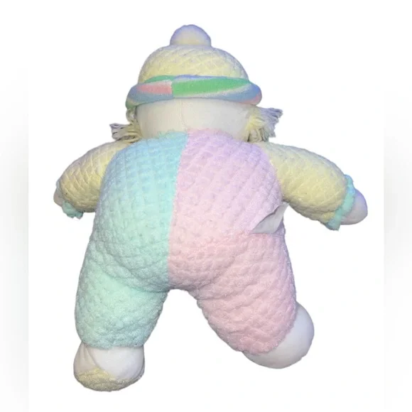 Vtg TB Trading Co Terry Cloth Pastel Clown Plush Lovey Blue Pink Green Yarn Hair