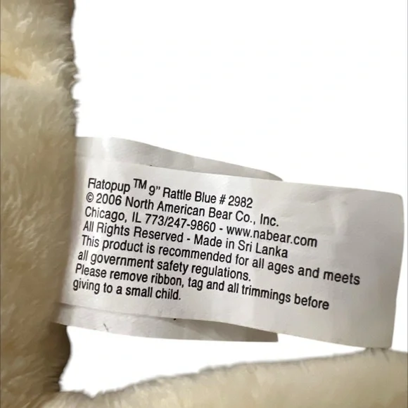 This rare North American Bear Company plush toy is sure to delight collectors and lovers of all ages. Featuring a cute multicolor Flatopup design, this 9-inch rattle toy is perfect for both baby and toddler playtime. With its soft and cuddly construction, it makes for a perfect gift for any occasion. The toy is made in Sri Lanka and belongs to the character family of Flatopup. It is also suitable for unisex babies and puppies lovers. Get your hands on this hard-to-find lovey plush toy today!Great pre owned condition