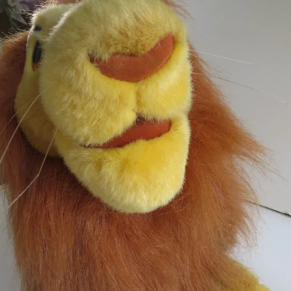 Disney Lion King Simbadouble puppetopening back of head - moves mouthopening belly - moves legshook and loop tapeeyes have some scratches32" long nose to tail12" talltail is 12" long10" widewhiskers in good condition (1 single whisker is bend slightly)RAREVintage#601...weight 2lbs 8ozLOVE TO BUNDLE with other itemsSMOKE FREE Pet Free Environment