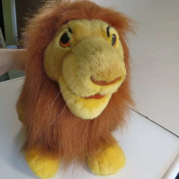 Disney Lion King Simbadouble puppetopening back of head - moves mouthopening belly - moves legshook and loop tapeeyes have some scratches32" long nose to tail12" talltail is 12"...