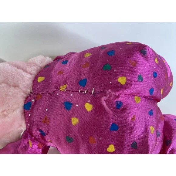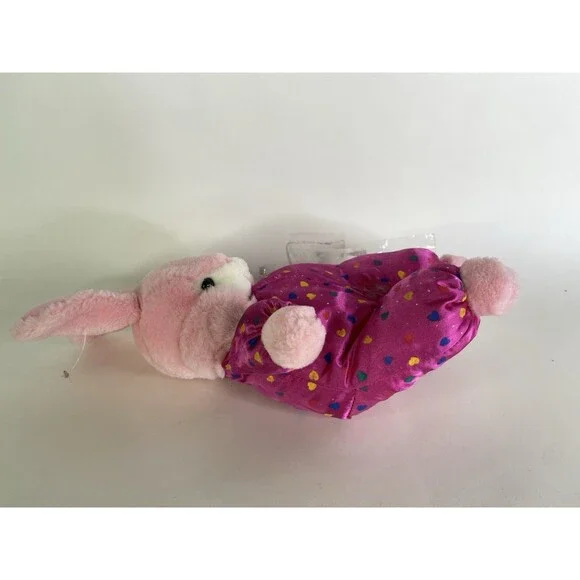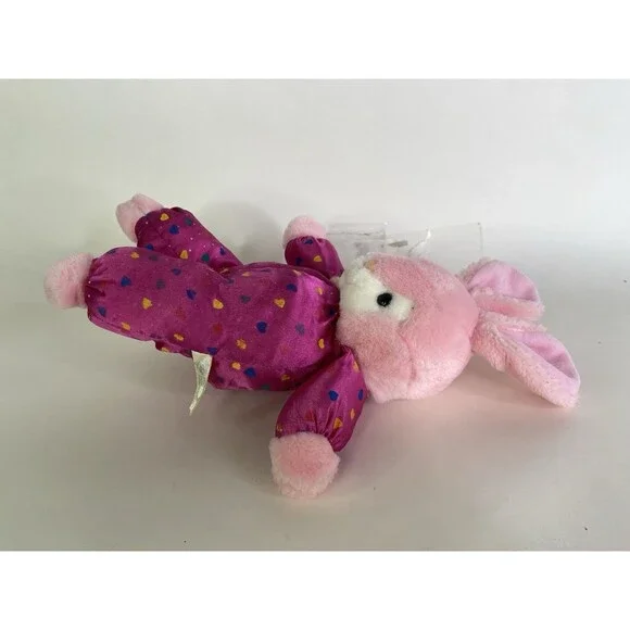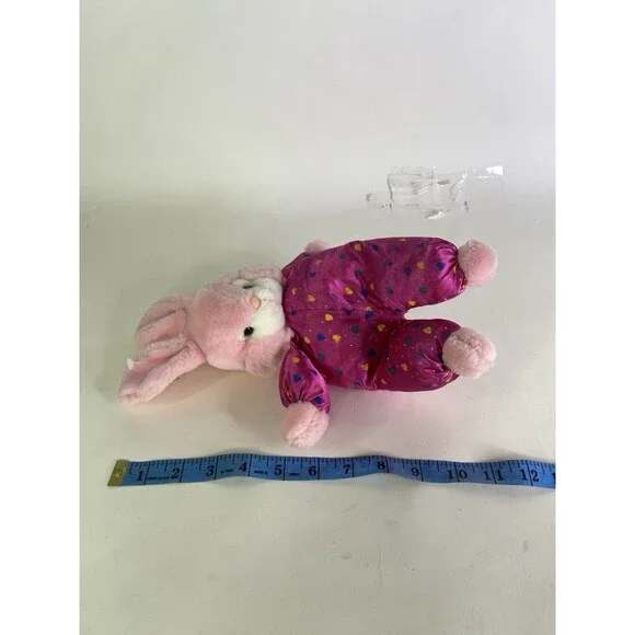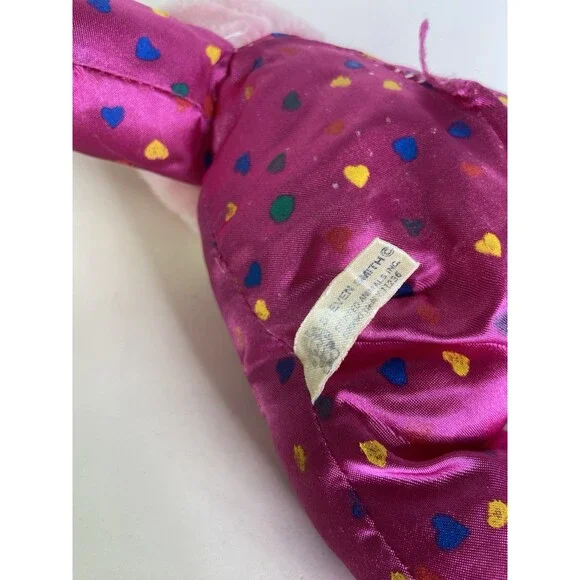 Up for grabs is a preowned Vintage Steven Smith Bunny Rabbit Pink Easter Plush Stuffed Animal Toy. Will come exactly as shown! There is a threading flaw on the back noted in photos! Clean overall. No holes or tears. No other additional parts or accessories are included. SOLD AS IS! Measurements laying flat are included in photos. Please refer to all photos. Ask any questions prior to purchasing! Thanks!