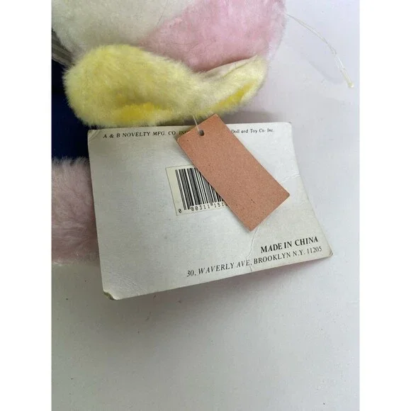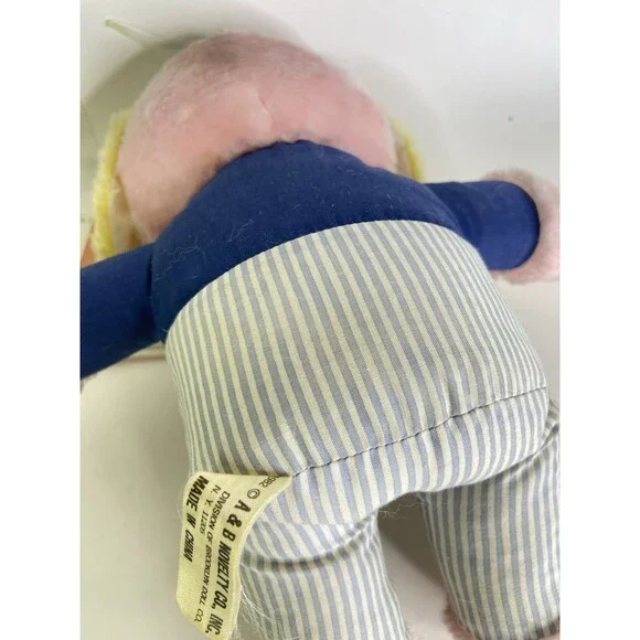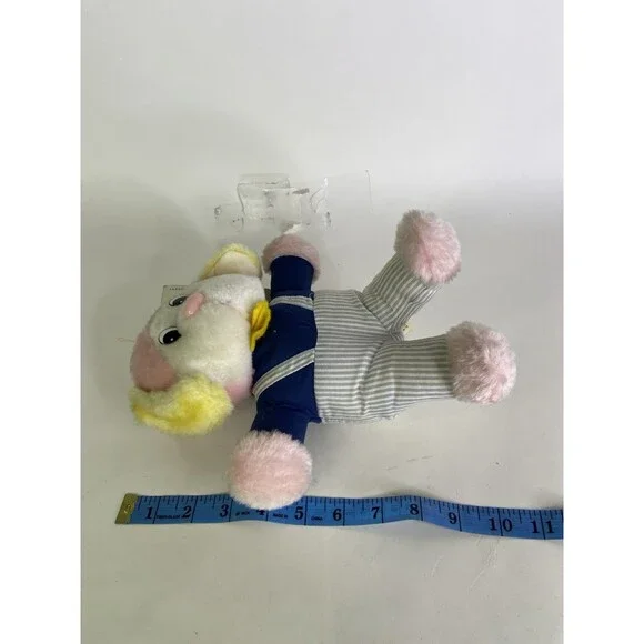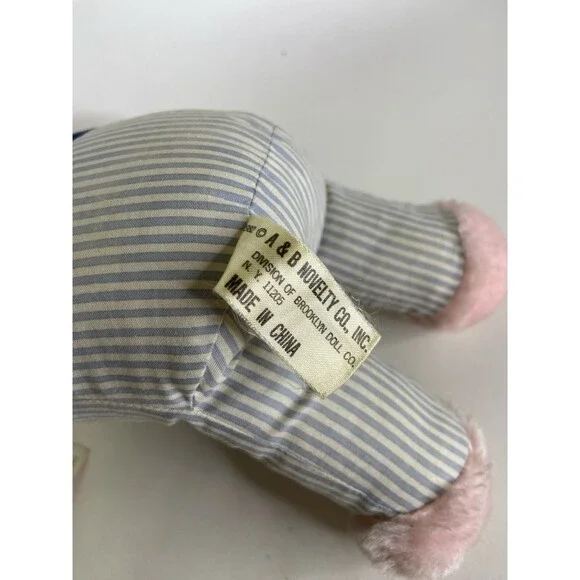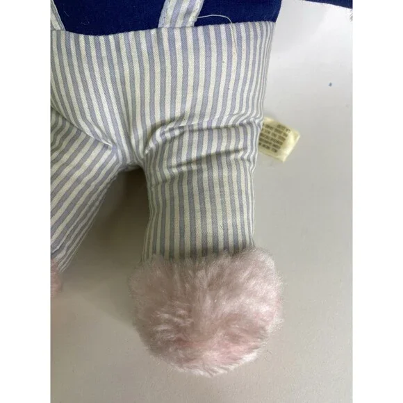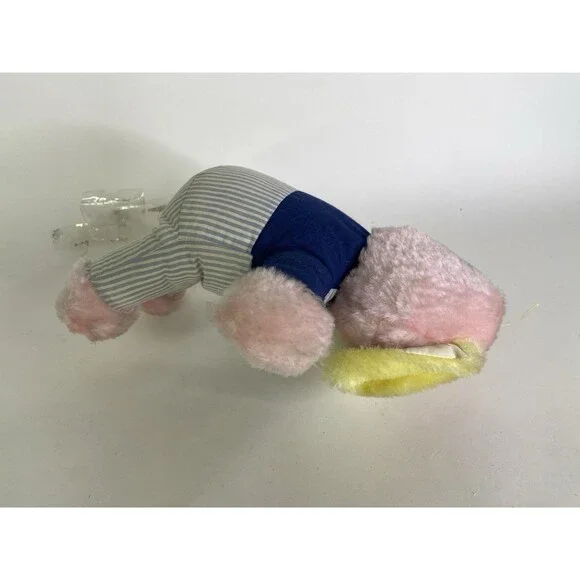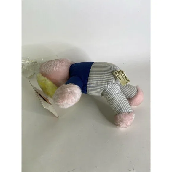 Up for grabs is a preowned Vintage Pick A Pet Pink Off White Yellow Puppy Dog Striped Overalls Stuffed Animal Toy A & B Novelty. Original tag attached but shows wear! There are discoloration flaws shown on the plush as noted in photos. No holes or tears. Will come EXACTLY as shown! Sold AS IS! Measurements laying flat are included in photos. Ask any questions prior to purchasing. Thanks!