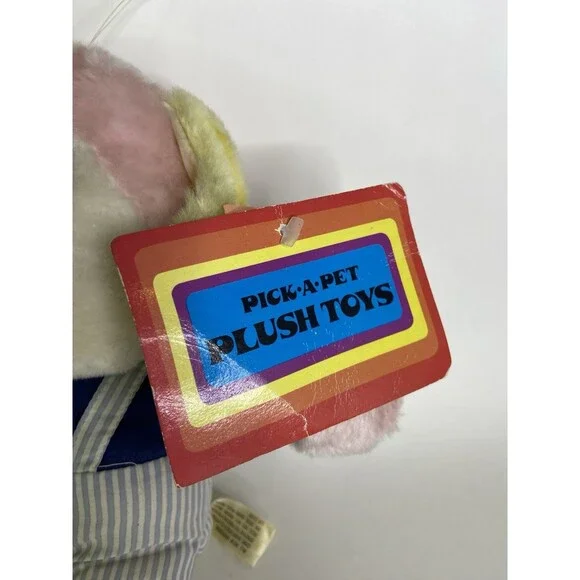 Up for grabs is a preowned Vintage Pick A Pet Pink Off White Yellow Puppy Dog Striped Overalls Stuffed Animal Toy A & B Novelty. Original tag attached but shows wear! There are...