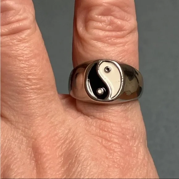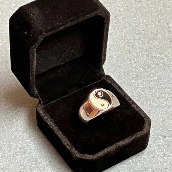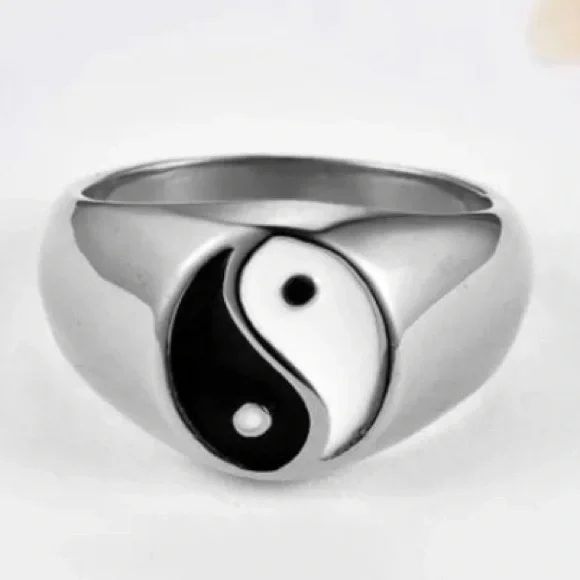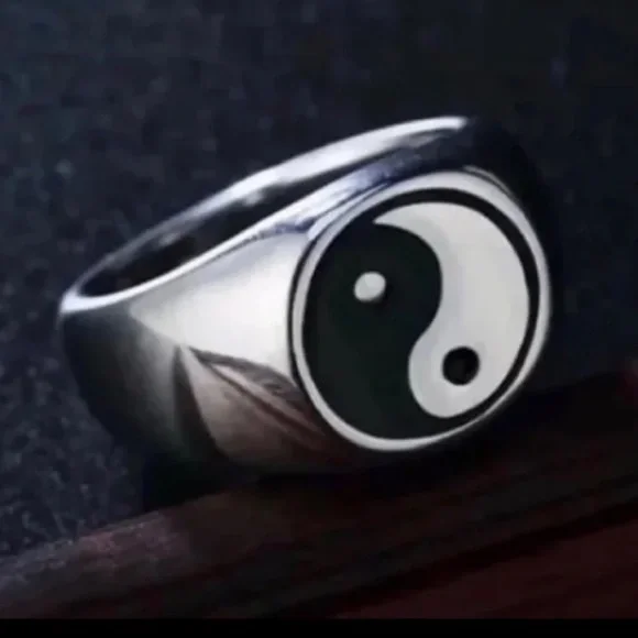New Mens Luxury Stamped 18KT Solid White Gold Chinese Tai Chi Black & White Yin Yang Designer Statement Ring, Everyday Ring or Unique Engagement ring, Wedding ring, Anniversary...