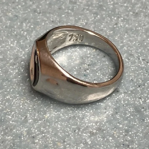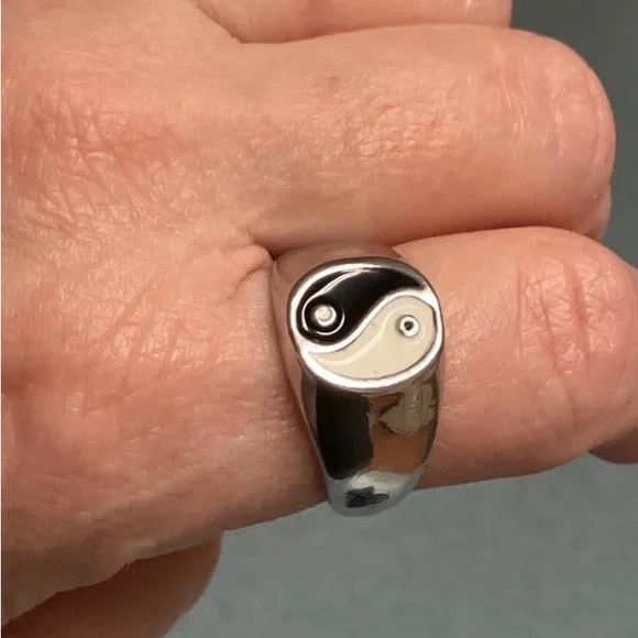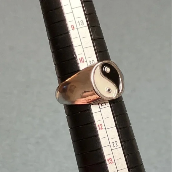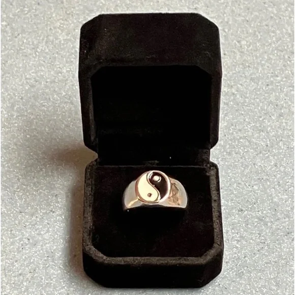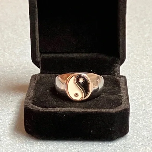 New Mens Stamped 18KT Solid White Gold Yin Yang Black & White Tai Chi Ring