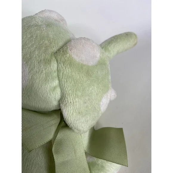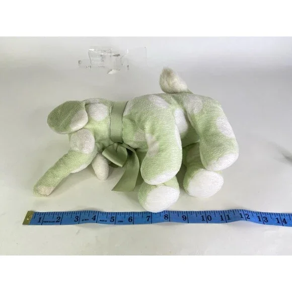 Baby Adventure Elephant Green White Polka Dot Plush Stuffed Animal Toy Sewn Eyes