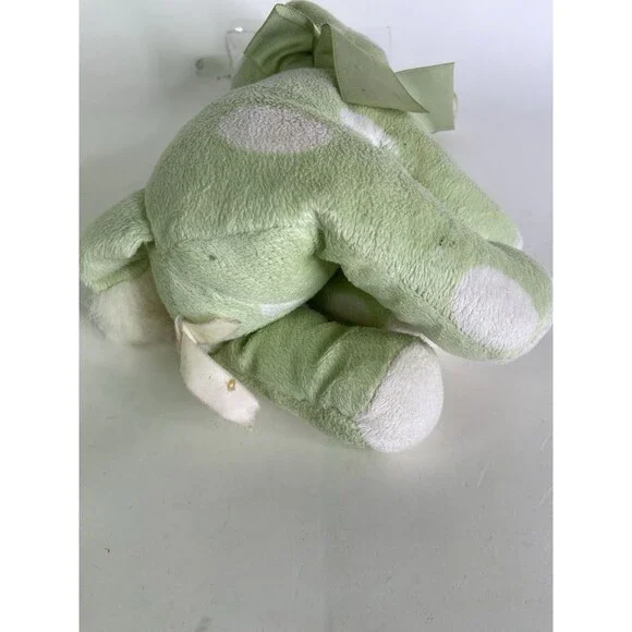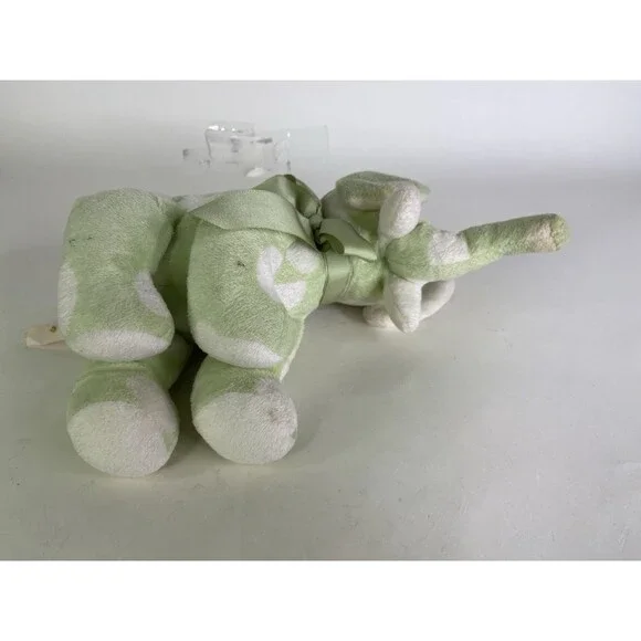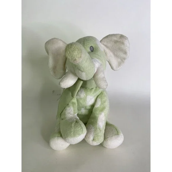 Up for grabs is a preowned Baby Adventure Elephant Green White Polka Dot Plush Stuffed Animal Toy Sewn Eyes. Will come EXACTLY as shown! There are heavy cosmetic discoloration flaws throughout the plush as noted in photos! The care tag has faded and there is significant wear! No holes or tears. SOLD AS IS! PLEASE DO NOT bid if you are uncomfortable with the flaws! No other additional accessories or parts are included. Measurements laying flat are included in photos. Please refer to all photos. Ask any questions prior to purchasing! Thanks!