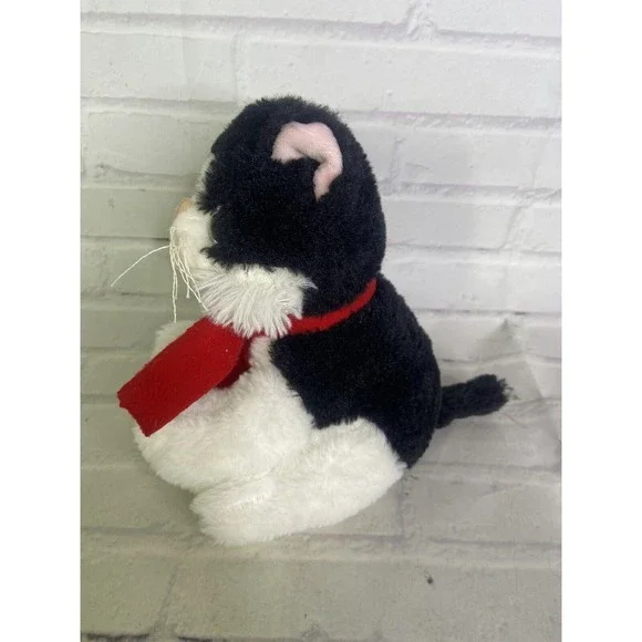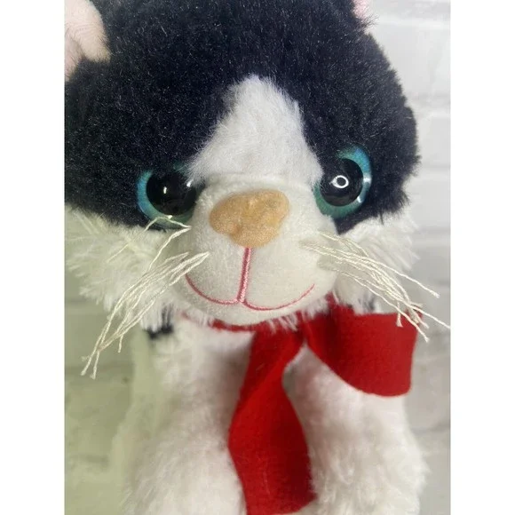 Up for grabs is a preowned Walmart Black White Cat Kitten Red Bow Plush Stuffed Animal Toy Blue Eyes. Will come EXACTLY as shown! The nose has wear and cosmetic flaws! No holes or...