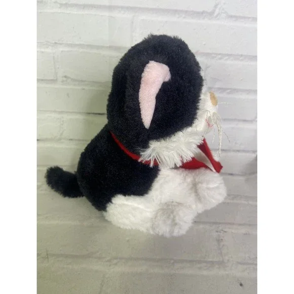 Walmart Black White Cat Kitten Red Bow Plush Stuffed Animal Toy Blue Eyes