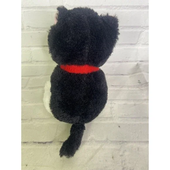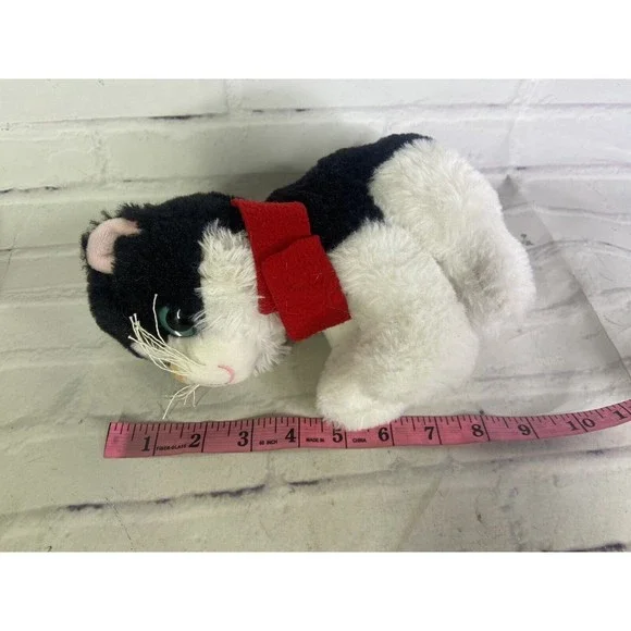 Up for grabs is a preowned Walmart Black White Cat Kitten Red Bow Plush Stuffed Animal Toy Blue Eyes. Will come EXACTLY as shown! The nose has wear and cosmetic flaws! No holes or tears. SOLD AS IS! No other additional accessories or parts are included. Measurements laying flat are included in photos. Please refer to all photos. Ask any questions prior to purchasing! Thanks!