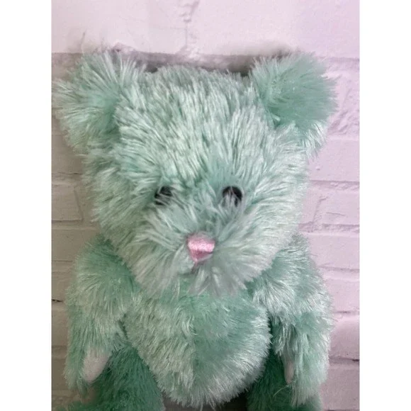 Tony Toy Mint Green Teddy Bear Plush Stuffed Animal White Paws Pink Nose