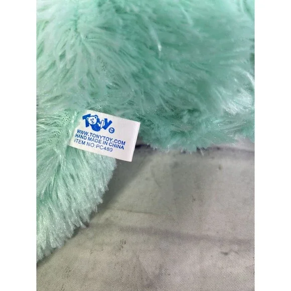 Up for grabs is a preowned Tony Toy Mint Green Teddy Bear Plush Stuffed Animal White Paws Pink Nose. Will come EXACTLY as shown! Clean overall! No holes or tears. SOLD AS IS! No other additional accessories or parts are included. Measurements laying flat are included in photos. Please refer to all photos. Ask any questions prior to purchasing! Thanks!