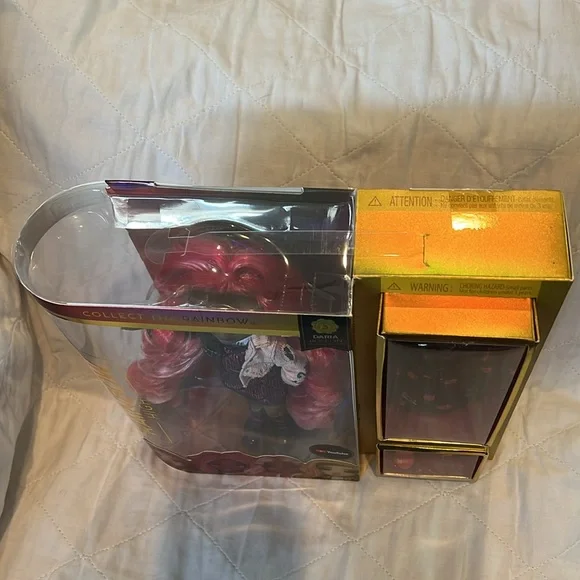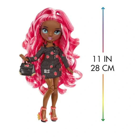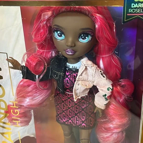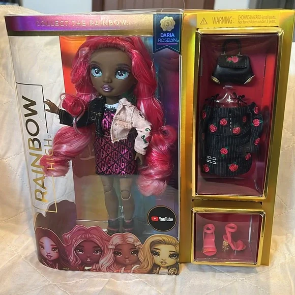 Brand New Never Used Rainbow High Series 3 Daria Roselyn Fashion Doll – Rose NWTBEAUTIFUL ROSE HAIR FASHION DOLL: Daria Roselyn has a unique design and is dressed in rose (pink and red) from head to toe. She has gorgeous detailed features in her fashion, beautiful hair, long eye lashes and glass eyes. Collect the Rainbow of all the gorgeous Rainbow High fashion dolls.2 MIX & MATCH OUTFITS: Daria comes with 2 complete doll outfits with doll clothes, doll shoes and doll accessories. Dress her in each look, then mix & match the outfits and accessories to spark imagination and storytelling fun.#2