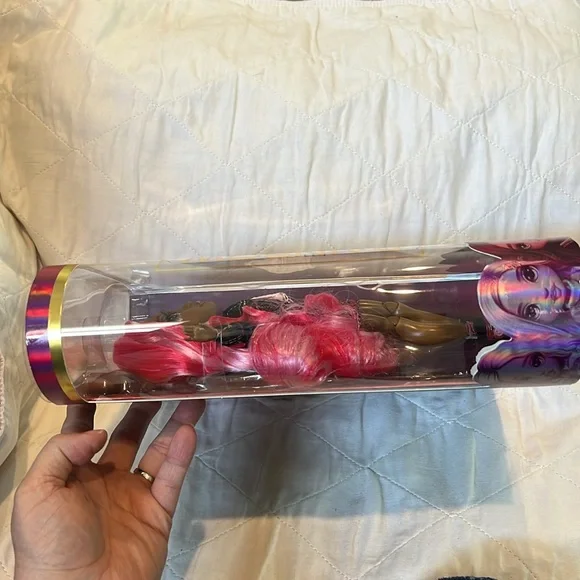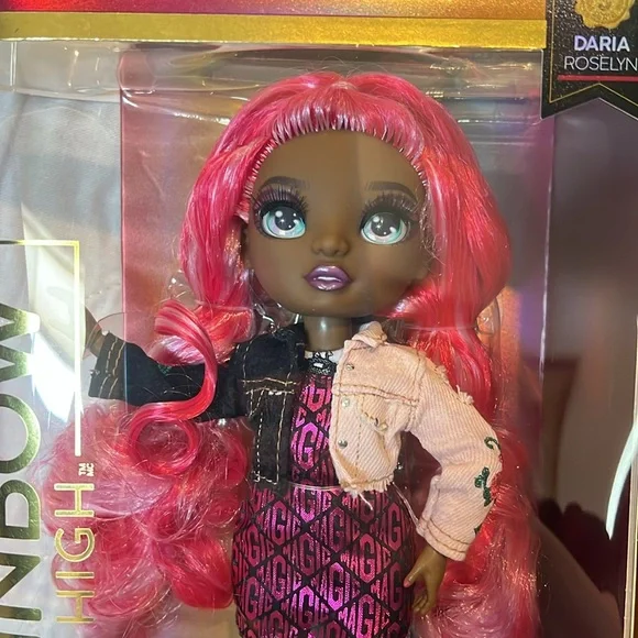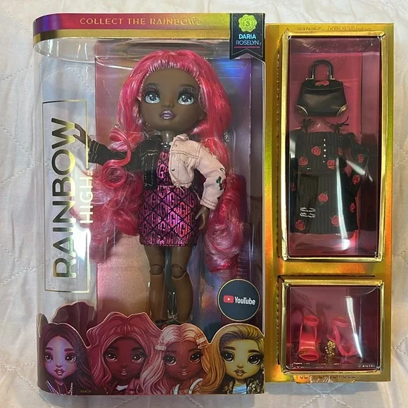 Brand New Never Used Rainbow High Series 3 Daria Roselyn Fashion Doll – Rose NWTBEAUTIFUL ROSE HAIR FASHION DOLL: Daria Roselyn has a unique design and is dressed in rose (pink and red) from head to toe. She has gorgeous detailed features in her fashion, beautiful hair, long eye lashes and glass eyes. Collect the Rainbow of all the gorgeous Rainbow High fashion dolls.2 MIX & MATCH OUTFITS: Daria comes with 2 complete doll outfits with doll clothes, doll shoes and doll accessories. Dress her in each look, then mix & match the outfits and accessories to spark imagination and storytelling fun.#1