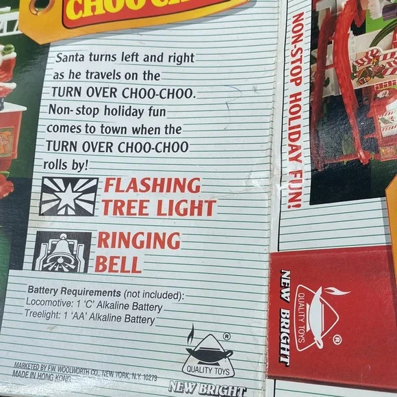 Vintage 1991, new in box, Turn Over Choo Choo with Santa. This was never used. The box is very worn from the outside. Some of the Styrofoam on the inside fell off. I had gotten one of these for each of my girls. We played with only one of them. This one was not played with.(4567)