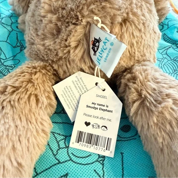 Brand new with tag Authentic Smudge Elephant in Medium sizeOriginal dust bag includedSmudge Elephant loves naptime, and keeps falling asleep on the march! Flop this supersoft silly down to sit on those squishable trumpet paws. With warm grey-brown fur, bright black eyes and great big fancy ears, Smudge Elephant is an adorable dreamer.Dimensions:5.1in x 4.3in x 9.4inSitting Height:5inMain Materials:PolyesterInner Filling:Polyester Fibers, PE BeansHard EyeFrom a smoke-free home. Pets are kept away from all plushies.