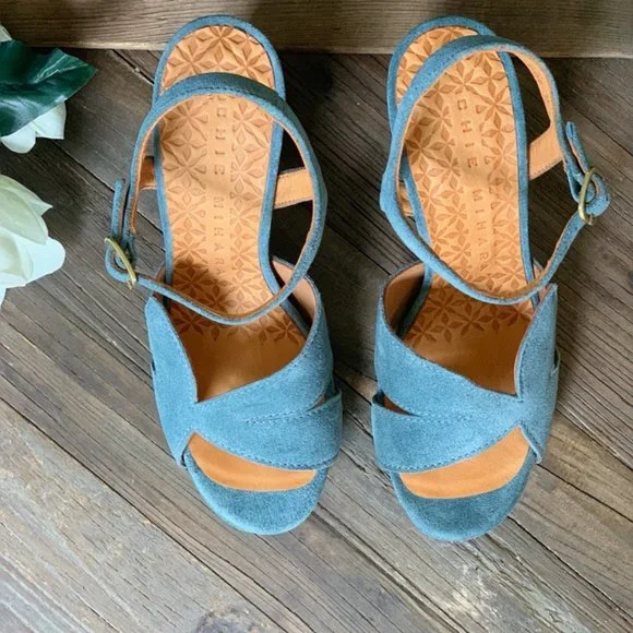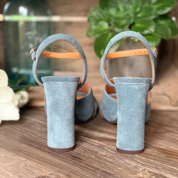 Very soft suedeBlue colorReal heel height 4.5 inchesVery soft leather liningBuckle-closureSelf-covered heelRubber and half leather soleNew with box and dust bagShips in original...
