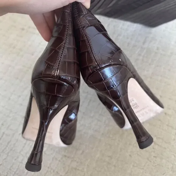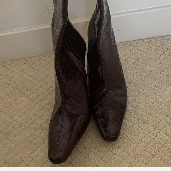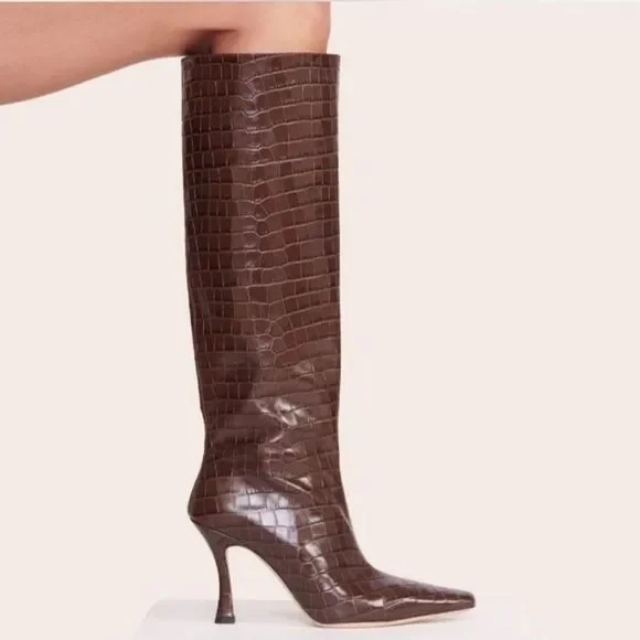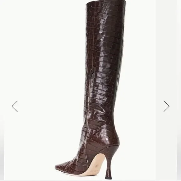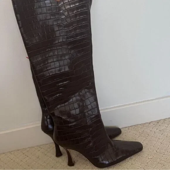 Staud Cami Croc-Embossed Tall Boots Size 35.5 (US 5.5) - Espresso Brown