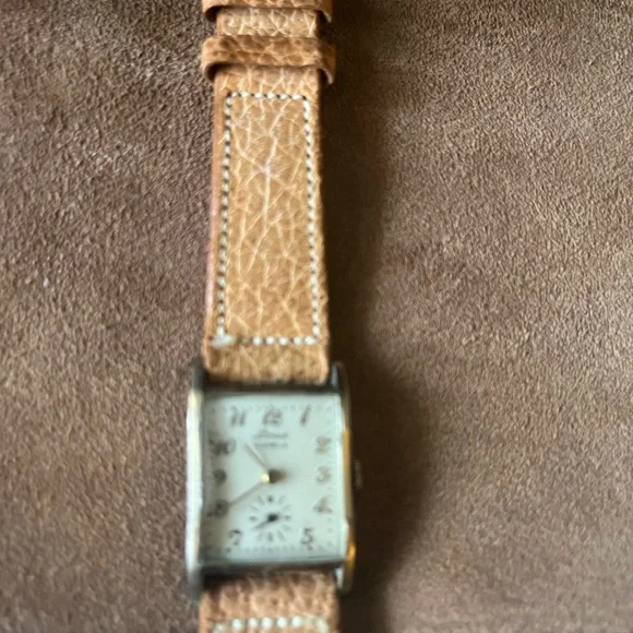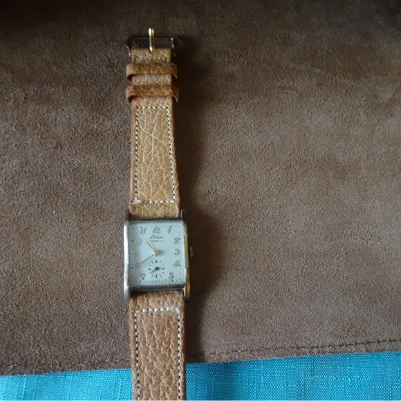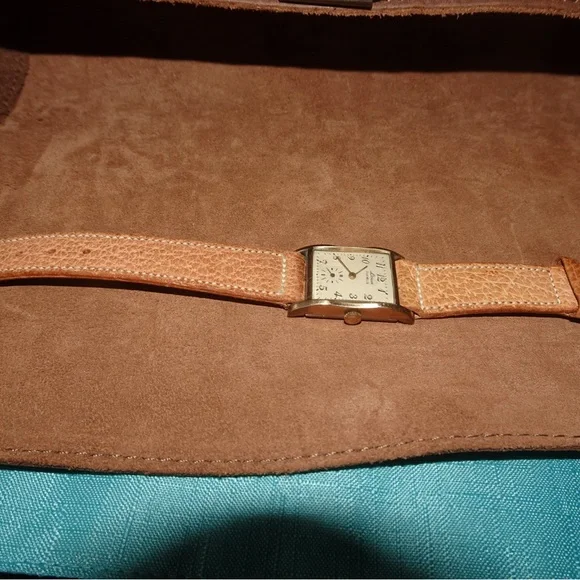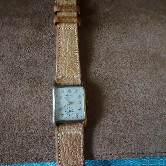 Vintage Louis 17 JewelTan and Gold Watch with Leather Strap