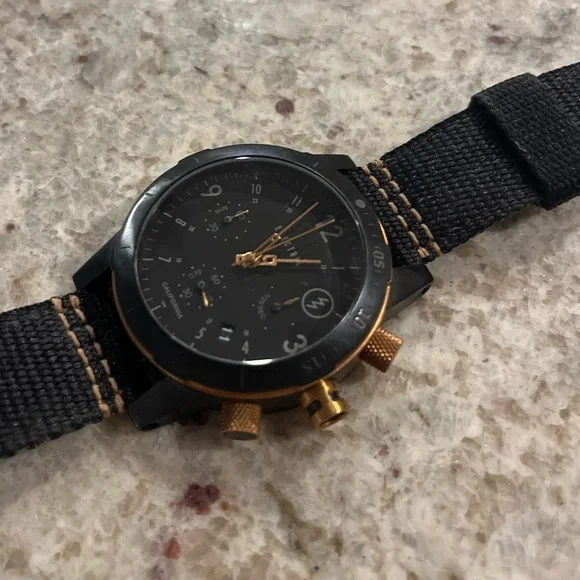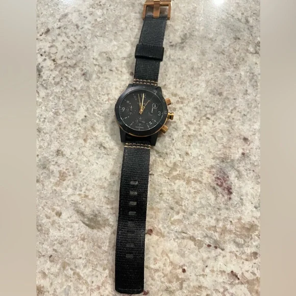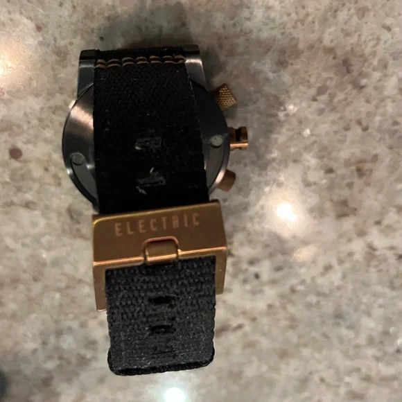 ELECTRIC California wristwatch FW02 Chronograph In excellent condition All black/copper AnalogMovement QuartzWoven polyester band Six brass hands Date indicator Mineral domed...