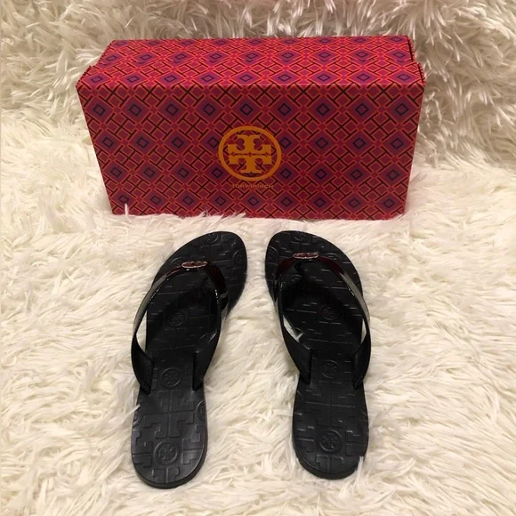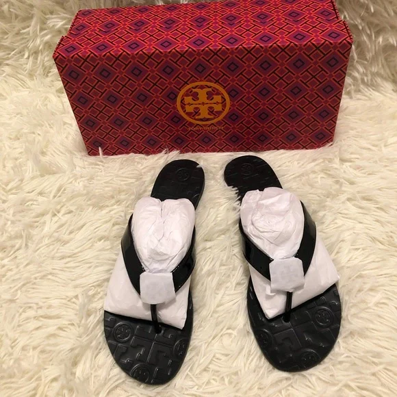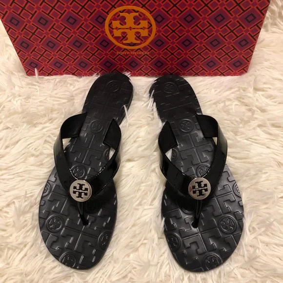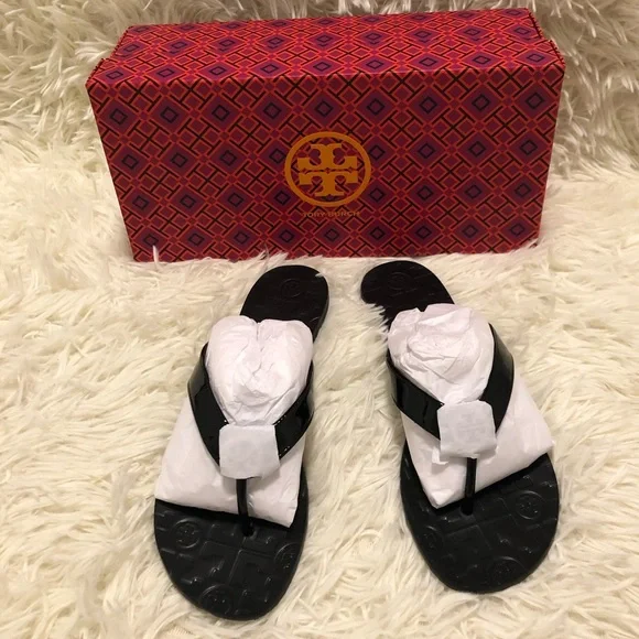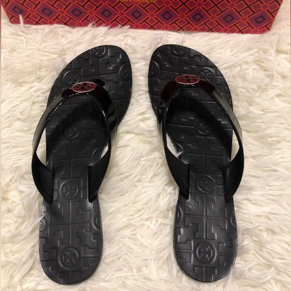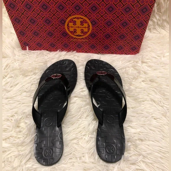 Tory Burch Thora Patent Calf Flip Flops Sandals