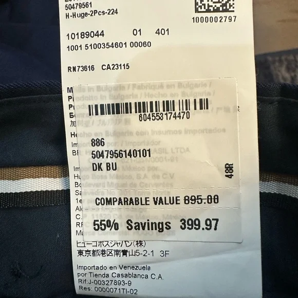 These Hugo Boss dress pants in a sophisticated blue hue offer a tailored fit with a flat front design, perfect for formal or business occasions. The subtle texture of the fabric...
