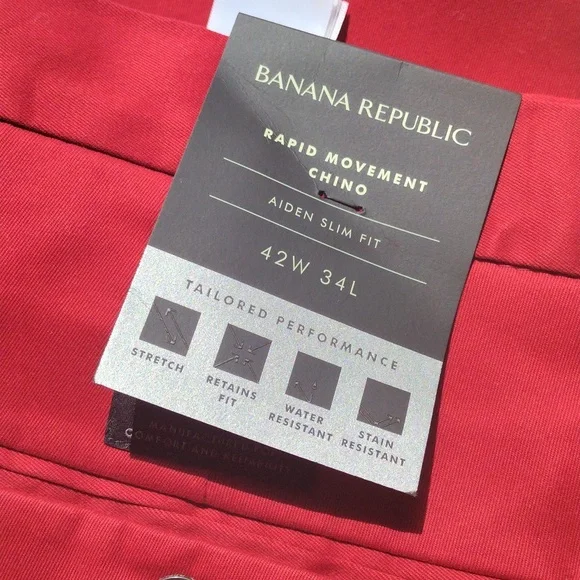 Banana Republic Aiden Slim Rapid Movement Red Star Chino 42W x 34L