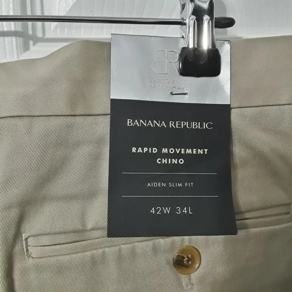 Khaki colorAiden Fit: Mid-rise. Slim through thigh.Rapid Movement Chinos: Tailored performance chinos designed to do more. Engineered with stretch for a comfortable fit that keeps its shape, with added water and stain resistant properties.Front coin and off-seam pockets. Rear buttoned welt pocketsZip fly with hook-and-bar closure.