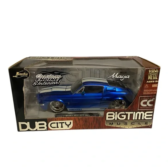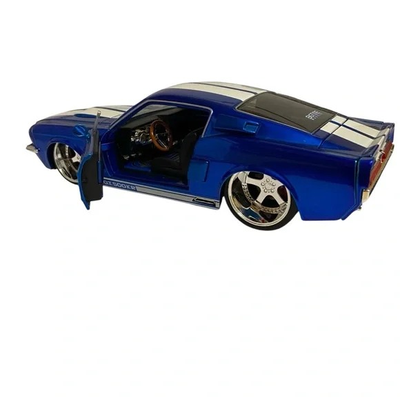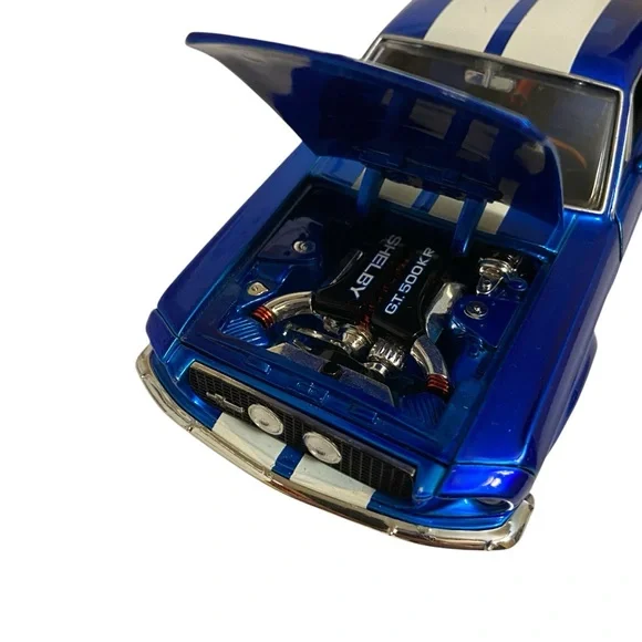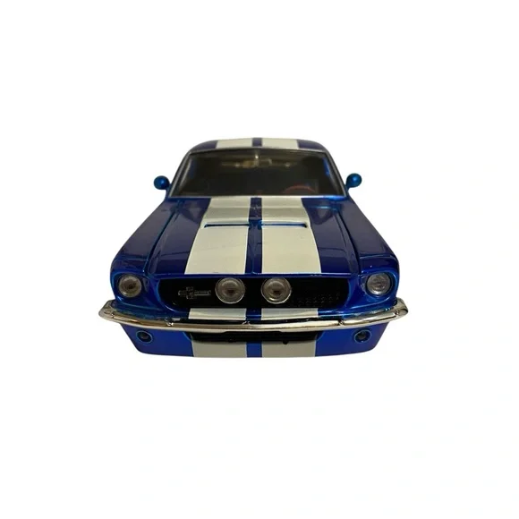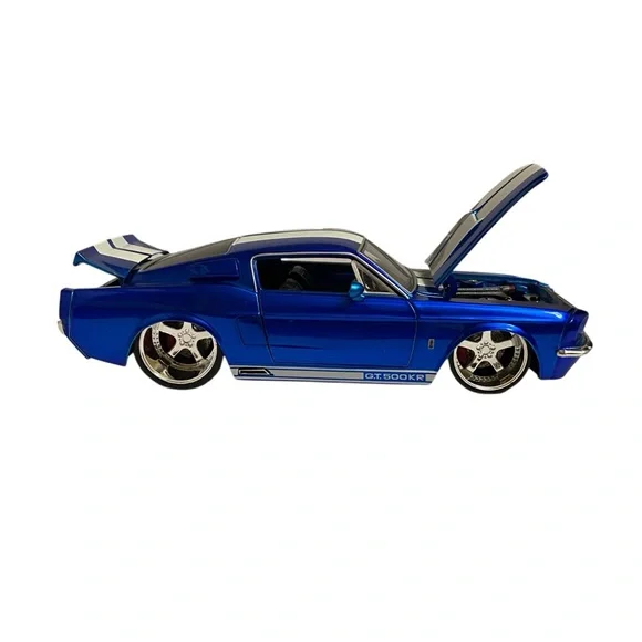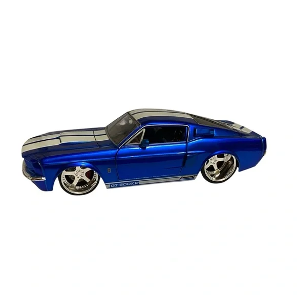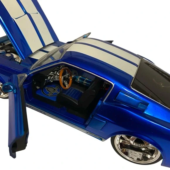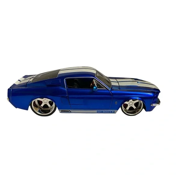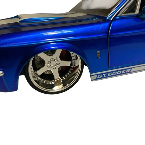 Jada BTM 1967 Shelby Mustang GT-500KR Electric Blue with Stripes Jada 1:24100% Die Cast Metal Wheels by Maya “DTS”Metallic Electric Blue with White Stripes Jada Toys 2005 Box Included Excellent Condition