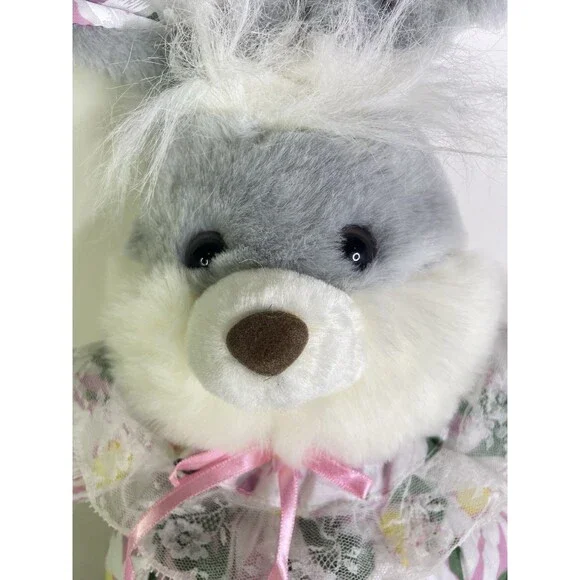 Bunny Rabbit Easter Gray Plush Stuffed Toy Daisies VTG Yang Toys Factory