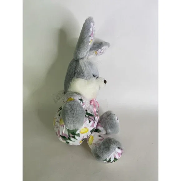 Up for grabs is a preowned Bunny Rabbit Easter Gray Plush Stuffed Toy Daisies VTG Yang Toys Factory. Will come EXACTLY as shown! Clean overall! No holes or tears. SOLD AS IS! No other additional accessories or parts are included. Measurements laying flat are included in photos. Please refer to all photos. Ask any questions prior to purchasing! Thanks!