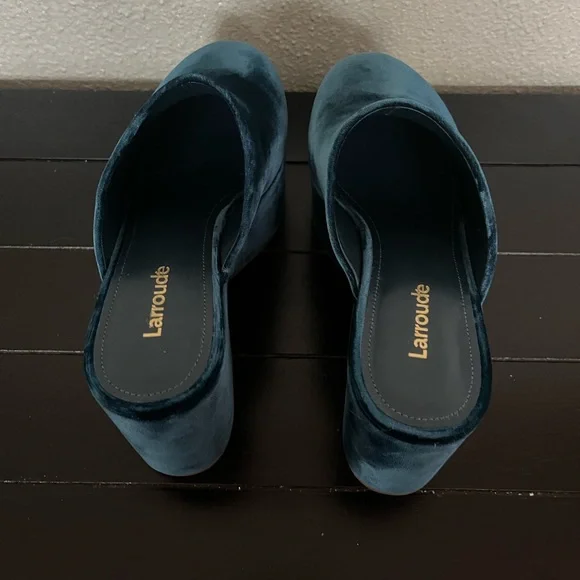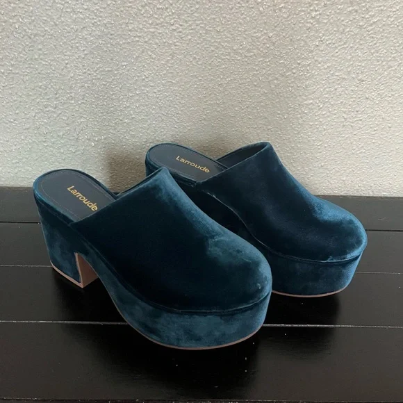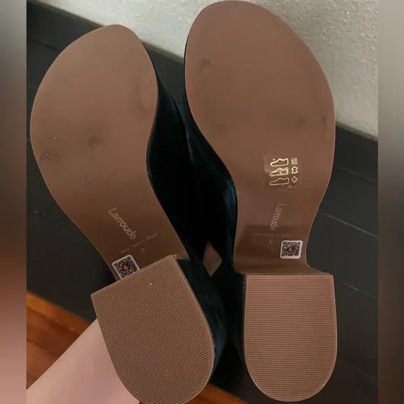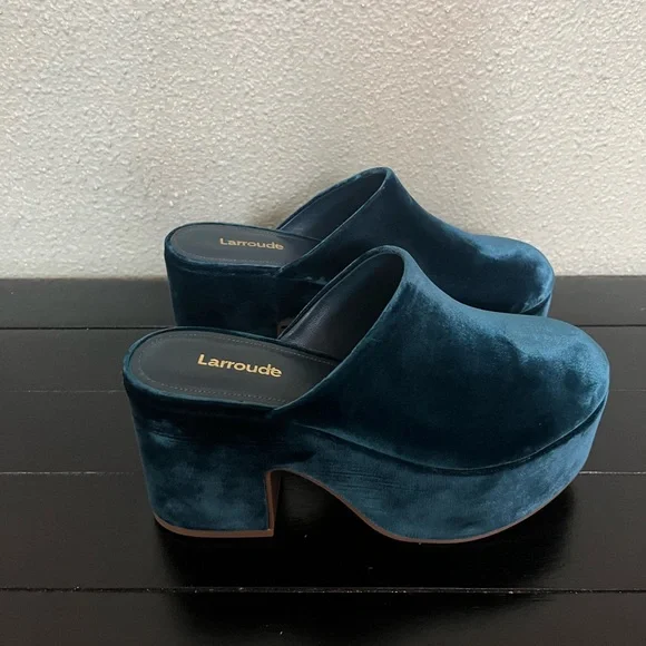 Product Details: Deep Sea Velvet fabric Open round toe 3.6 inch thick heel Finely crafted rubber sole for support, durability, and comfort Insole with memory foam cushion and hot stamp logo Handmade in Brazil* sold out in this color online