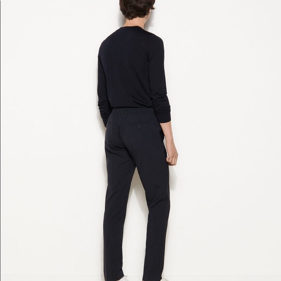 Up for your consideration are these on trend men’s SANDRO PARIS NWT elasticized waist casual cotton slacks featuring a inner drawstring, two front pockets, hidden zipper and one snap closure pocket in the back. These are in a deep dark Navy can be dressed up or down with a tee.. These have sort of water proof feel to them. More jogger like.EUR sz 40 or a small/ med US sz. Inseam is 32 inches