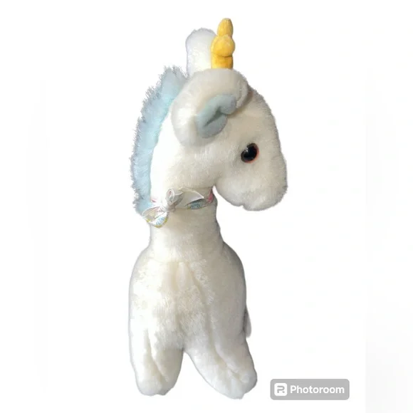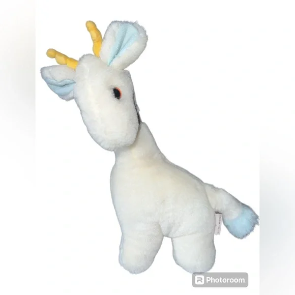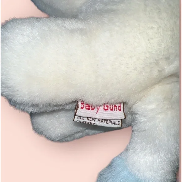 This vintage 1990 Baby Gund stuffed plush lovey toy is a rare find for collectors and enthusiasts alike. The white and blue rattle plush giraffe design is approximately 11.5 inches in size and was manufactured in China. The brand, Gund, is known for its high-quality stuffed animals, making this piece a valuable addition to any collection. The character family, Baby Gund Giraffe, is sure to bring joy and nostalgia to those who grew up with these beloved toys.Great pre owned condition
