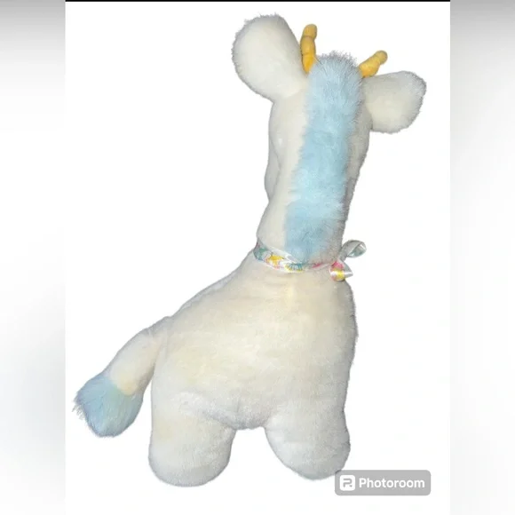 Very Rare Baby Gund Vintage 1990 White Blue Giraffe Stuffed Plush Lovey Toy Bow