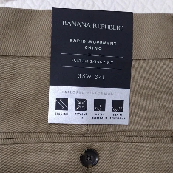 Banana Republic Fulton Skinny Rapid Movement Airforce Khaki Chino 36W x34L
