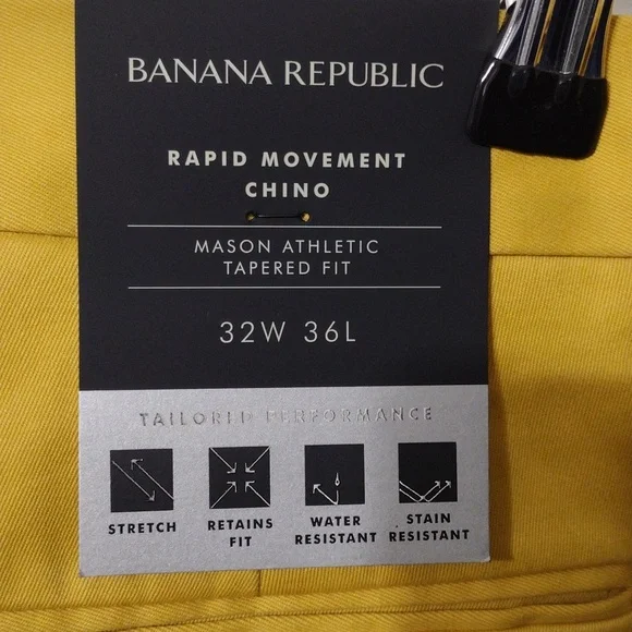 Banana Republic Mason Athletic Tapered Rapid Movement Yellow Chino 32W x 36L