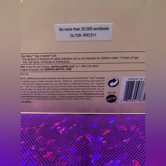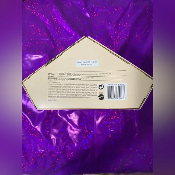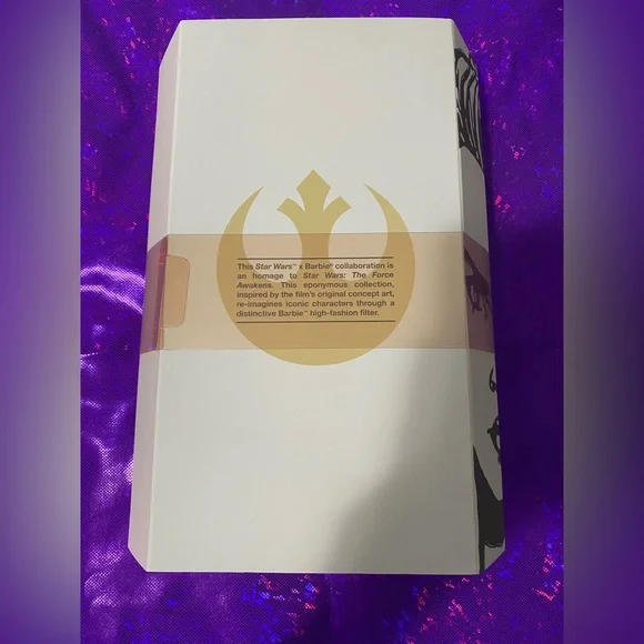 New, unboxed.Inspired by the films´ original concept art, the Star Wars x Barbie collection re-imagines iconic characters through a distinctive Barbie high-fashion filter.This Star Wars x Barbie collaboration is an homage to Star Wars and fan-favorite character, Rey.Star Wars Rey x Barbie doll captures Rey´s legendary look in a crystal pleated chiffon gown with a crossover neckline and draped hood.Ombre boot-leggings and accessories with a hammered gold look complete her heroic look.Star Wars Rey x Barbie doll makes a great gift for fans and collectors. Includes a Star Wars doll stand and Certificate of Authenticity.