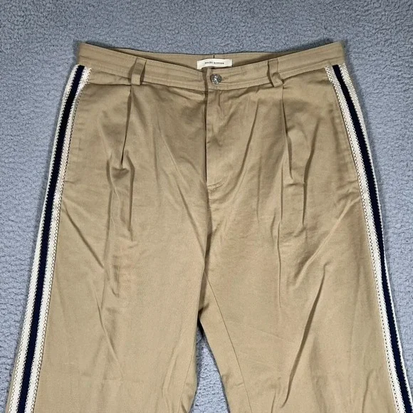 Wales Bonner Pants Mens Brown 35x31 Volta Jazz Striped Straight Fit TrousersMeasurements are taken laid flatWaist - 17.5 inchesInseam - 31 inchesMEASUREMENTS and CONDITION: Please see photographs above for actual measurements. Please compare our measurement photos to your favorite garments to ensure fit. We do our best to describe accurately and measure approximately at the time of listing. Please see photos as they are part of the condition description.SHIPPING: We ship daily and most orders go out the same day. QUESTIONS: I try to respond to questions right away so please feel free to ask for information or photos.CLEANING: All preowned items are cleaned PM standards and stored in a pet-free, smoke-free environment. Please follow our store to be notified of new items and promotions.