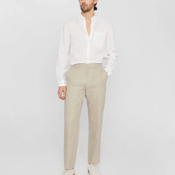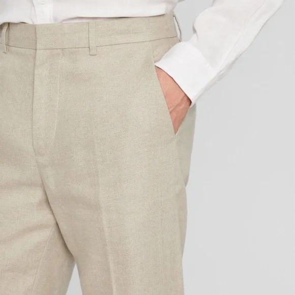 Stay cool even when the temperatures rise with these clean-cut, summer-weight suit trousers. Crafted from naturally breathable Irish linen with a softly tapered fit for ease of wear and unmatched style. Pair it back to our Summer Linen Suit Blazer for a warm-weather uniform.Khaki: Model is 6´1" wearing a size 32Designed for a neatly tapered fitShell: 100% Irish linen; lining: 100% polyesterSlim fit with a 32" inseam; based on a size 32Zip fly with hook-and-bar closureSet-on waistband; belt loops; two side pockets; creased legs; two back pocketsLinedDry cleanImportedSKUs 3855 (sz 38), 4912 (sz 28)