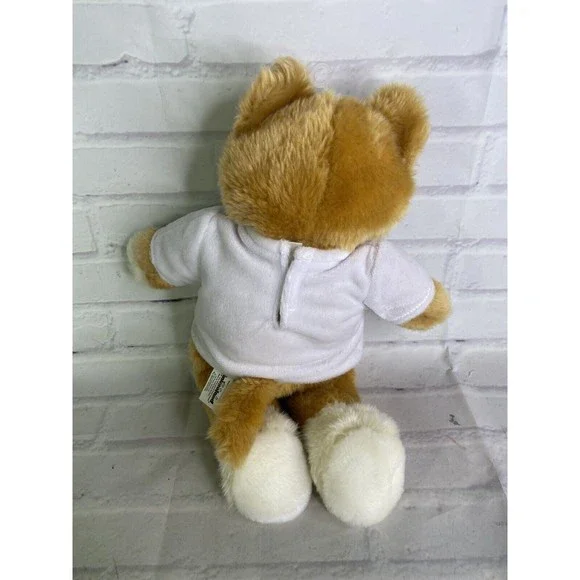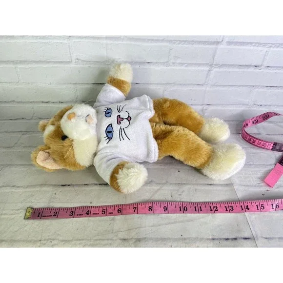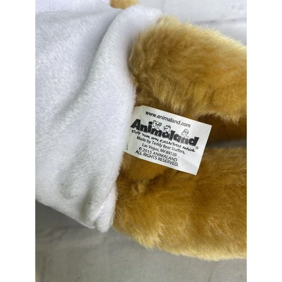 Up for grabs is a preowned Animaland Tabby Cat Tan White Plush Stuffed Animal Toy 2015. Will come EXACTLY as shown! There are cosmetic flaws noted in photos! It has a hang tag still attached to the front of the shirt and there is also a flaw noted on the side of shirt! SOLD AS IS! Measurements Laying flat are included in photos! Please refer to all photos. Ask any questions prior to purchasing. Thanks!